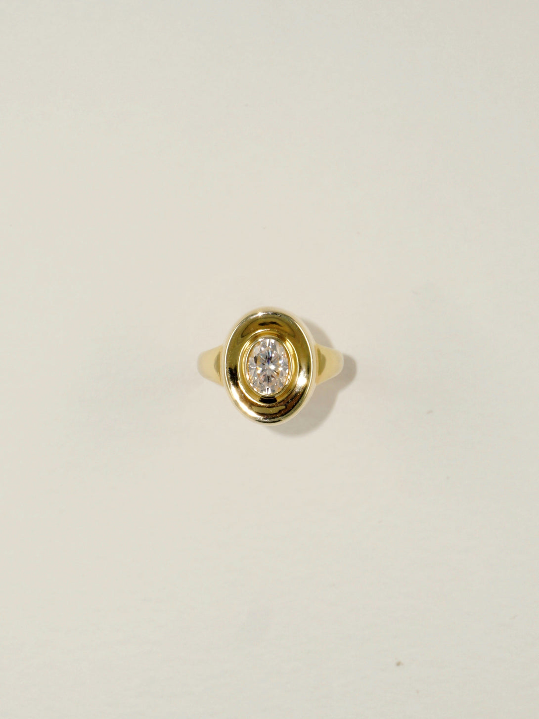 Designed as a cigar-band ring with a sculptural facade, accented by an oval-shaped lab grown diamond weighing approximately 0.50 carat; mounted in solid gold.